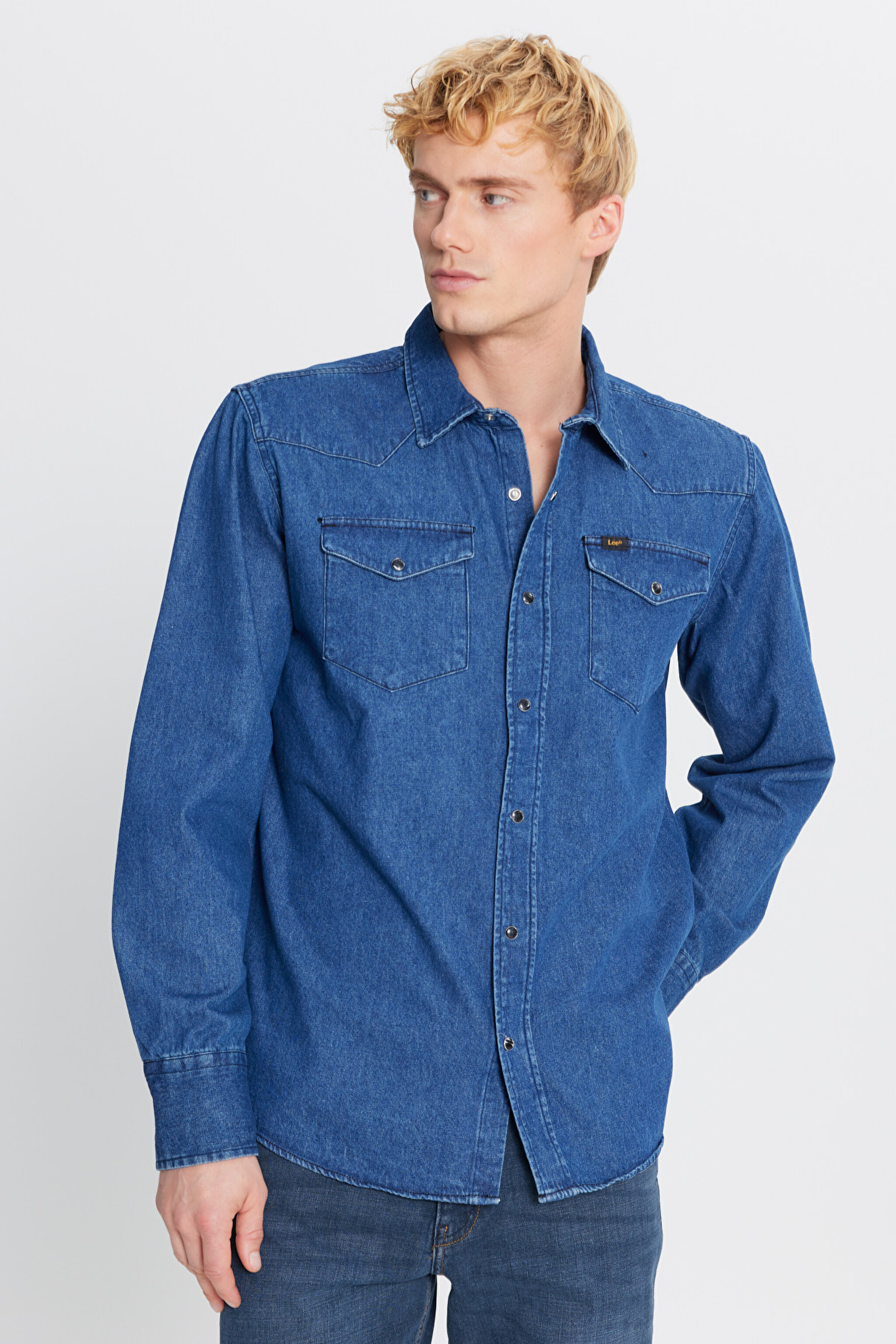 %100 Pamuk Regular Fit Normal Kesim Cepli Klasik Yaka Denim Gömlek